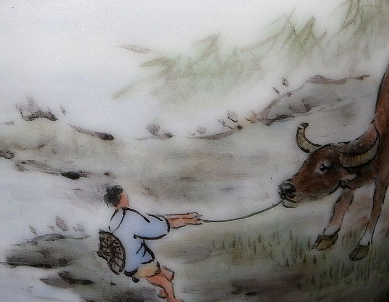 《浴牛图蒜頭瓶》 尺寸7 cm x 16 cm